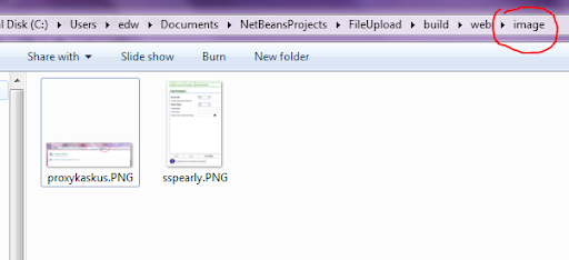 Pada folder proyek simpan file-file gambar. Pada kesempatan kali ini saya akan menunjukkan cara menyimpan sebuah gambar di basisdata pada aplikasi java swing menggunakan teknik yang kedua yaitu hanya menyimpan nama file dari gambar. Cara Menampilkan gambar di database sama halnya kita menampilkan gambar biasa di HTML yaitu menggunakan tag img.