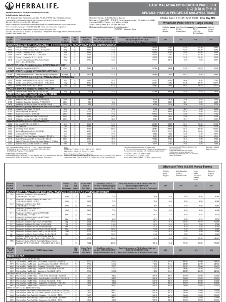 Herbalife Malaysia Price List Sabah Sarawak As Of 22nd May 10 Pdf